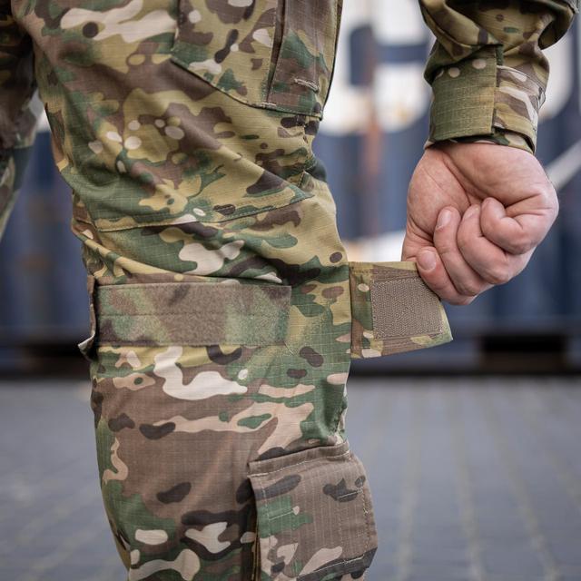 Для підвищення міцності колін у штанах є спеціальні наколінники.Також є липучка нижче колін для регуляції ширини штанів та зручності при носінні наколінників. Наколінники захищають коліна від фронтальних ударів об тверді предмети, коли ви стрибаєте з висоти або пересуваєтеся по-пластунськи.